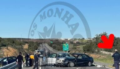 Dois veículos ligeiros de passageiros estiveram envolvidos num choque frontal, na tarde deste domingo, 1 de Dezembro, ao quilómetro 304 do IP2, na estrada que liga Portel a Monte do Trigo.