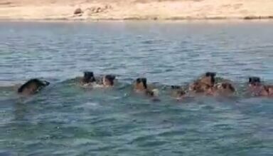 Quase duas dezenas de javalis terão sido avistados a refrescarem-se nas águas do Grande Lago de Alqueva, segundo imagens partilhadas a meio da semana nas redes sociais.