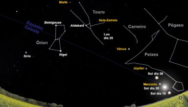 Durante os primeiros crepúsculos do mês continuaremos a assistir ao ocaso conjunto dos planetas Vénus e Júpiter.