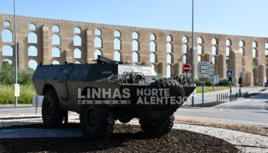 Uma Chaimite foi colocada numa das rotundas da Avenida de Badajoz, em Elvas, não só para assinalar os 50 anos do 25 de Abril como também para aí ficar em permanência, servindo de “cartão de visita” à vertente de turismo militar da cidade.