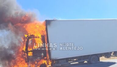 Um incêndio no eixo traseiro de um veículo pesado de mercadorias fez acionar, há cerca de uma hora, vários meios de socorro para o quilómetro 96 da Estrada Nacional 4, junto a Arraiolos.