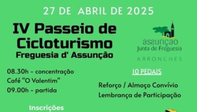 A Junta de Freguesia de Assunção, no Concelho de Arronches, organiza amanhã o IV Passeio de Ciclo Turismo.