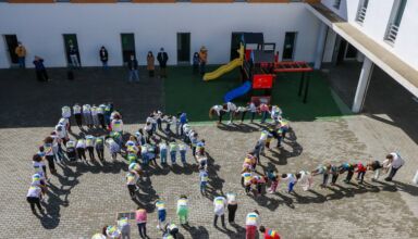 Dezenas de estudantes do 10.º, 11.º e 12.º anos de escolaridade da Escola Secundária Dom Sancho II, em Elvas, reuniram-se hoje no pavilhão desportivo do estabelecimento de ensino e formaram a palavra paz como mensagem solidária de apoio à Ucrânia.