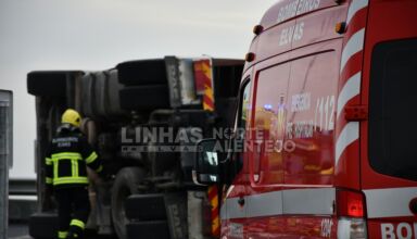 Um camião que transportava painéis solares despistou-se e tombou no acesso à Autoestrada 6 (A6), em Elvas, derramando gasóleo, obrigando ao corte temporário de trânsito naquele troço.