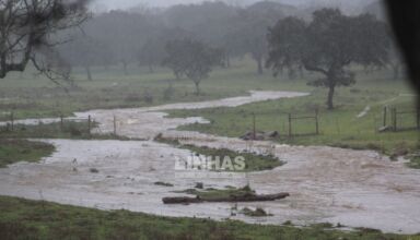 A chuva intensa na madrugada de hoje arrastou duas viaturas nas imediações da Ribeira do Cêto, em Elvas, após o transbordo do curso de água. Não houve feridos ou mortos.