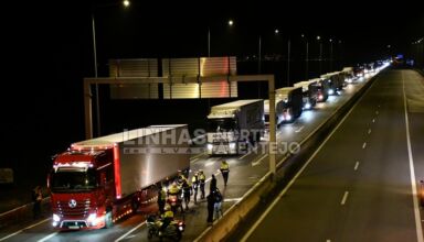 Os agricultores que bloqueiam hoje a Autoestrada 6 (A6) junto à fronteira do Caia, em Elvas, no distrito de Portalegre, estão a permitir a passagem de veículos prioritários e 10 camiões de hora a hora.