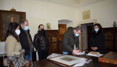 O executivo municipal de Vila Viçosa representado pelo vice-presidente, Tiago Salgueiro, e pela vereadora, Mónica Lobo, procedeu, ontem, dia 17 de Fevereiro, à assinatura do protocolo de cedência temporária e à entrega de uma obra de Henrique Pousão à Fundação da Casa de Bragança, representada pela directora do Museu-Biblioteca da Casa da Bragança, Maria de Jesus Monge.