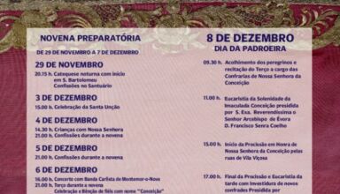 A solenidade da Imaculada Conceição está a ser assinalada em Vila Viçosa desde 29 de Novembro e prolonga-se até 8 de Dezembro, num conjunto de momentos celebrativos organizados pela Régia Confraria de Nossa Senhora da Conceição. As cerimónias decorrem no Santuário Nacional da Padroeira de Portugal, local de referência espiritual e histórica para os fiéis.