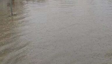 A acumulação de muita água, derivada da precipitação intensa, na Rua do Parreiral, em Sousel, causou uma inundação que interditou a via.