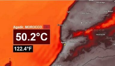 A estação meteorológica do aeroporto de Agadir, em Marrocos, registou uma temperatura de 50,2º, informou o MeteoSE.