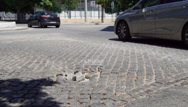 O pavimento em paralelo na rua de Portalegre, junto à Cidade Jardim, em Elvas, abateu com a queda de precipitação nas últimas horas.